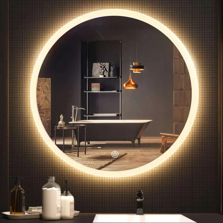 HE18-22B LED mirror is a round mirror with frontlit + backlit design, offering adjustable color and brightness across three light modes, enhanced by a 3cm aperture for increased luminosity. Equipped with features like Bluetooth, defogging, and motion sensing, ledlampfactory uses a 5mm thick copper-free silver mirror for superior clarity. Ideal for apartments and hotels, it’s a top choice for home bathrooms and bedrooms. The frameless design coupled with a vintage round shape is beloved by customers in the U.S. and the U.K.